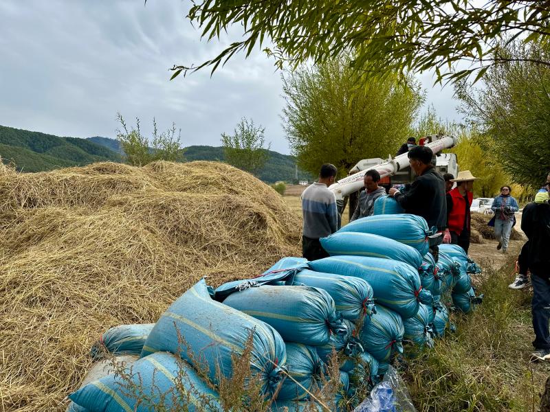 眼下,正是稻谷成熟收獲的時候。在維西縣攀天閣鄉(xiāng)安一村的稻田里,一穗穗黑谷將土地染得一片金黃,豐收的喜悅撲面而來。人與機器齊上陣,現(xiàn)場呈現(xiàn)一派繁忙熱鬧的景象。