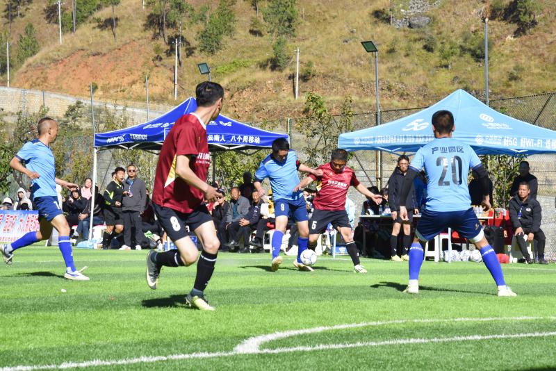 據(jù)了解,“園區(qū)杯”為期3天,共有來(lái)自昆明、大理、迪慶的9支代表隊(duì)參賽。比賽采取單循環(huán)積分制的形式進(jìn)行,最終決出冠、亞、季軍?;顒?dòng)旨在以足球運(yùn)動(dòng)為橋梁,積極與省內(nèi)開(kāi)發(fā)區(qū)、產(chǎn)業(yè)園區(qū),毗鄰縣、市互鑒互學(xué),進(jìn)一步增強(qiáng)園區(qū)干部群眾加快推進(jìn)香格里拉產(chǎn)業(yè)園區(qū)高質(zhì)量發(fā)展的向心力和凝聚力,助力園區(qū)高質(zhì)量發(fā)展。 圖為參賽隊(duì)員正在賽場(chǎng)上奮勇比拼。