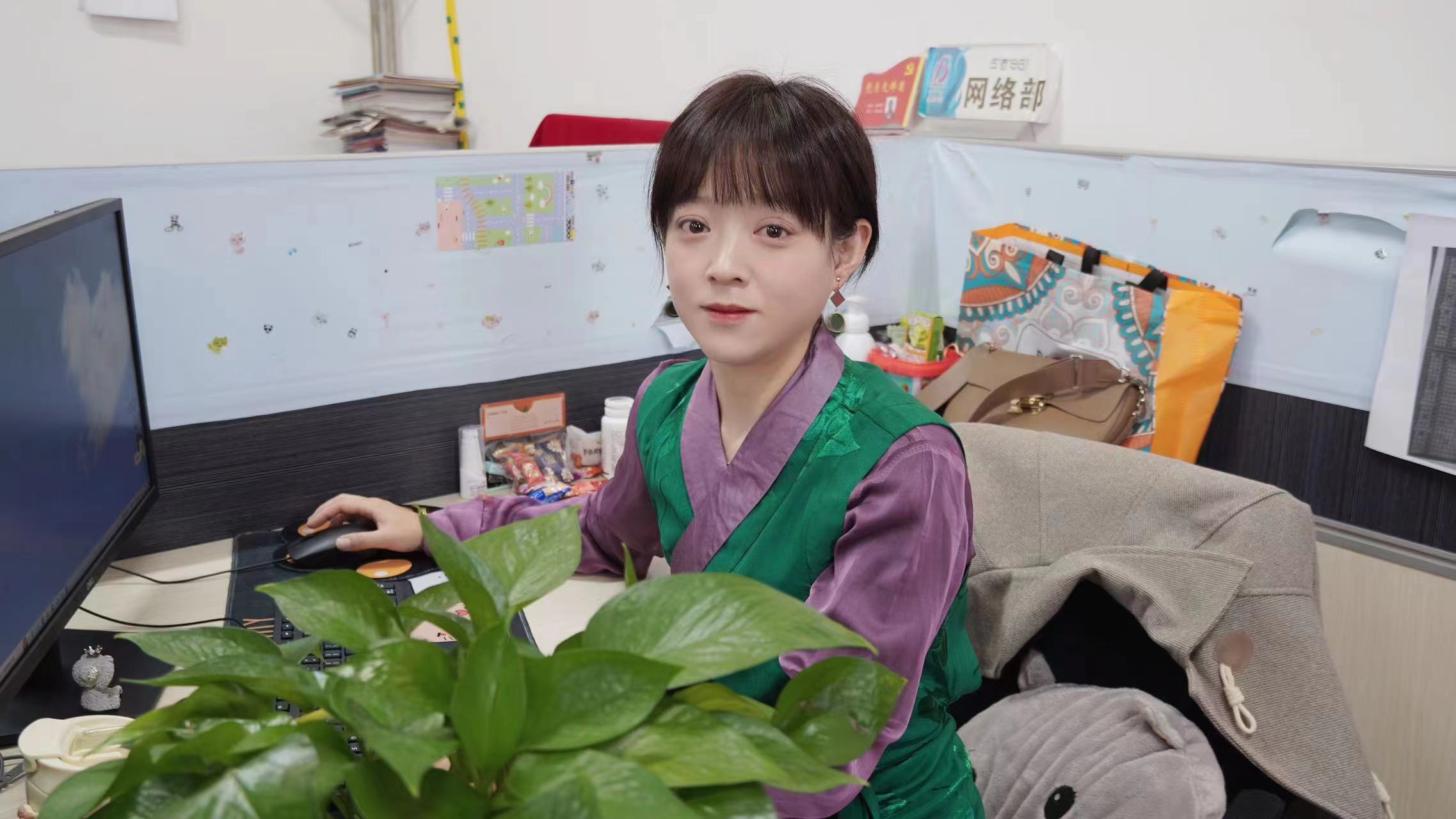 迪慶日報社編輯王瑄怡在單位采編平臺編校新聞稿件。