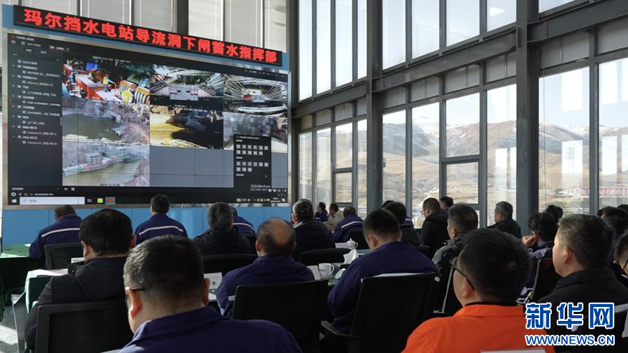 瑪爾擋水電站導(dǎo)流洞下閘蓄水現(xiàn)場(chǎng)。