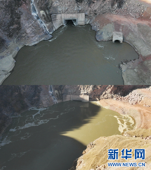 瑪爾擋水電站蓄水前后對(duì)比圖。(上圖為蓄水前、下圖為蓄水后)