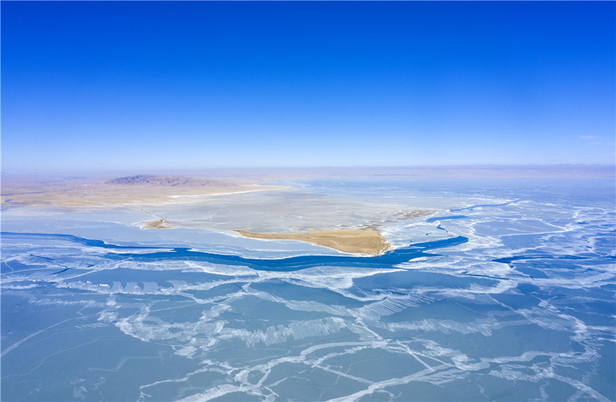 剛?cè)攵Y(jié)冰的青海湖湖面。楊濤 攝
