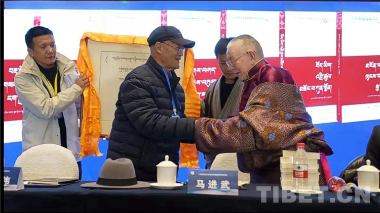 圖為與會嘉賓向馬進武教授敬獻哈達