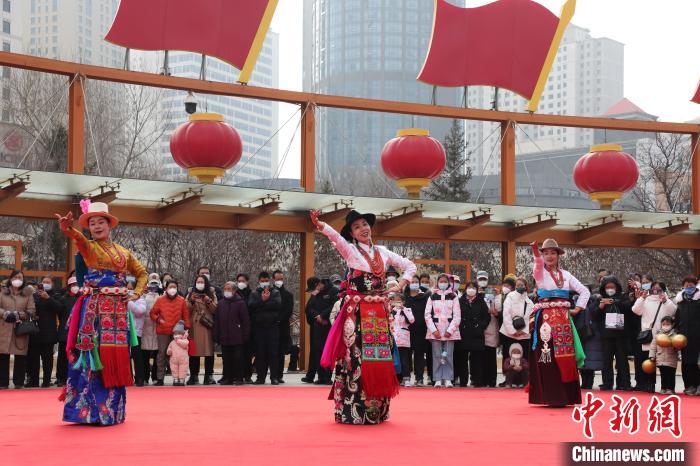 資料圖為在西寧市中心廣場,民眾欣賞民族服飾秀。馬銘言 攝