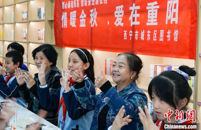 資料圖為西寧老人和小學生進行數(shù)字游戲,共度重陽節(jié)。馬銘言 攝