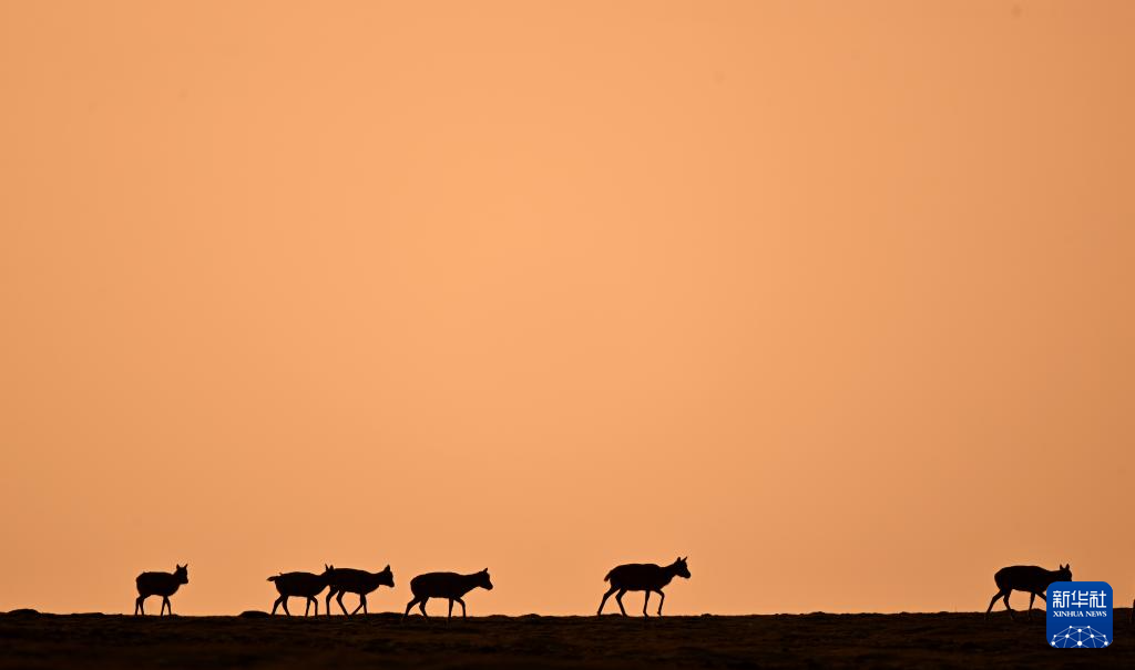 一群藏羚羊在可可西里卓乃湖區(qū)域活動(2023年6月18日攝)。新華社記者 張宏祥 攝