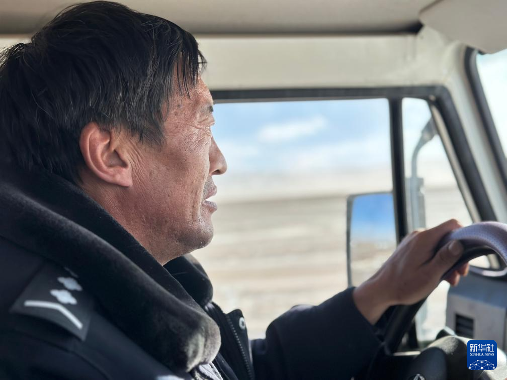 在可可西里卓乃湖區(qū)域附近,可可西里森林公安局巡山隊員尼瑪扎西在巡護途中(1月19日攝)。新華社記者 王金金 攝