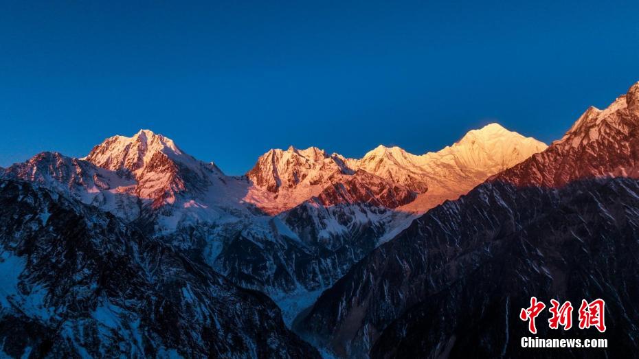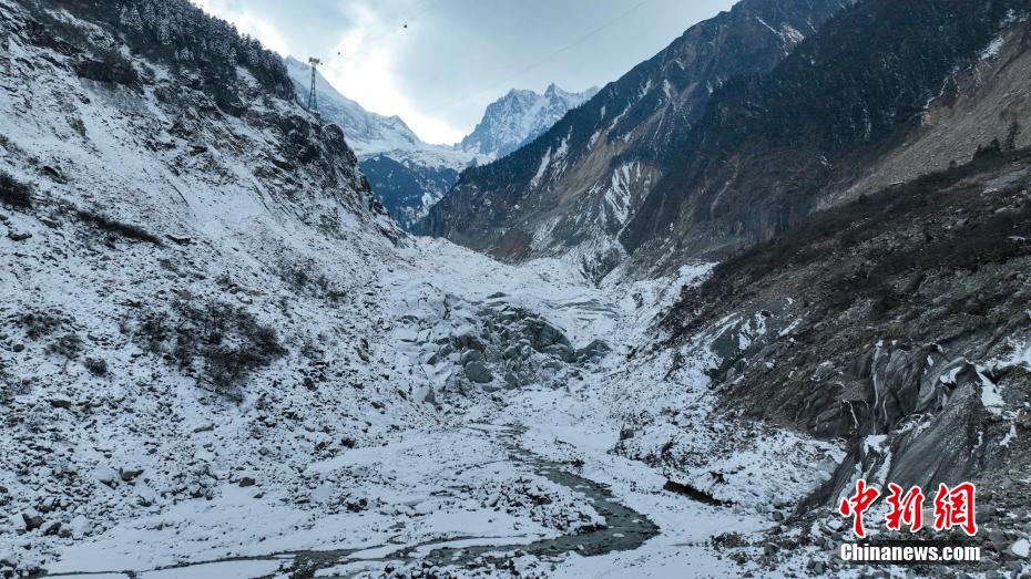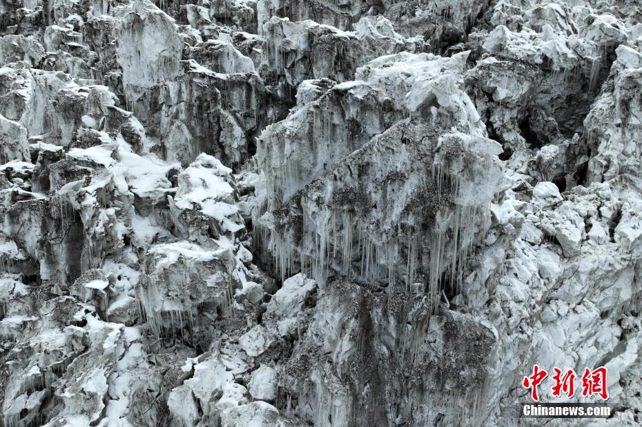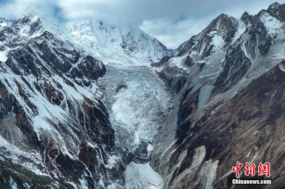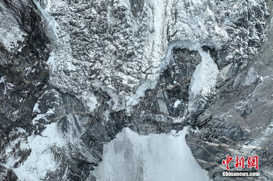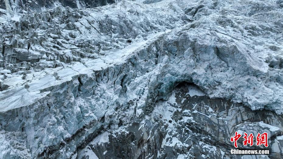 2月2日,四川省甘孜藏族自治州瀘定境內(nèi),一場雪后的貢嘎山披上了厚厚的“白紗”,在貢嘎山東坡順山而下的冰川沿海螺溝山谷綿延10多公里,就像一條“巨龍”盤在山谷中,十分壯觀。貢嘎山坐落于橫斷山系大雪山中段,主峰海拔7756米,被譽為蜀山之王。海螺溝冰川也是貢嘎山數(shù)十條冰川中規(guī)模最大、形態(tài)最美的一條。經(jīng)歷了2022年“9·5”瀘定地震后,海螺溝景區(qū)道路等重建工作完成,步游道、旅游服務(wù)設(shè)施升級,游客逐步回升。航拍鏡頭下的海螺溝冰川粒雪盆下端的“冰川冰”。記者 劉忠俊 攝