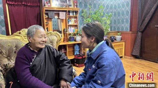 圖為扎西拉毛(右)在結(jié)拉村老人家中講解安全用電知識(shí),主動(dòng)咨詢用電需求。普布永措 攝