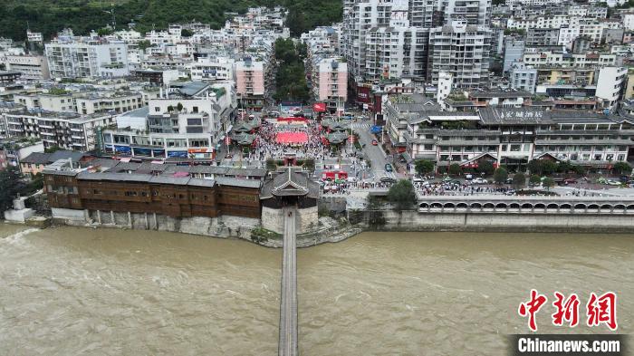 資料圖:航拍瀘定橋。(記者 劉忠俊 攝)