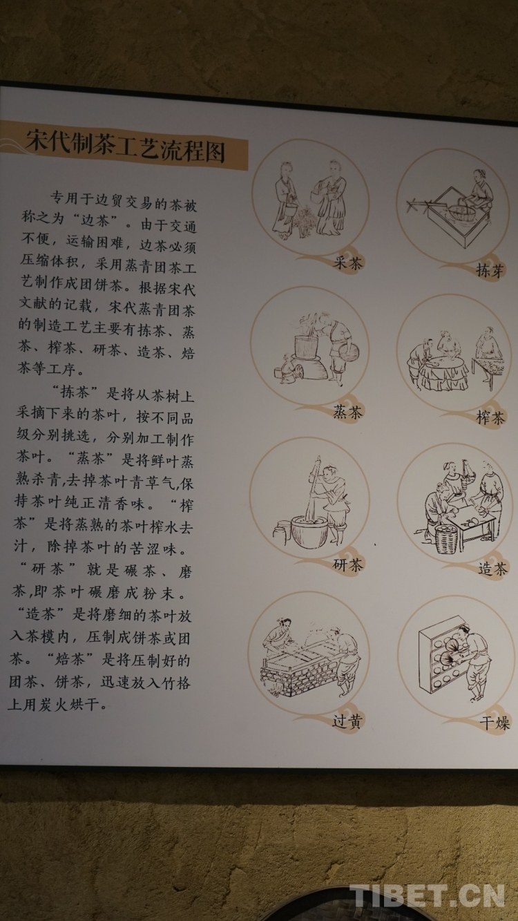 推開茶馬司的大門,出現(xiàn)在眼前的“茶馬司”石碑用漢藏兩種文字記錄著茶馬司的興衰歷史。“宋時因連年用兵,所需戰(zhàn)馬,多用茶換取。神宗熙寧七年,派李杞入川,籌辦茶馬政事,于名山,以名山茶易馬用……明洪武時,對茶葉實行官買官銷,由茶馬司主持交易……”