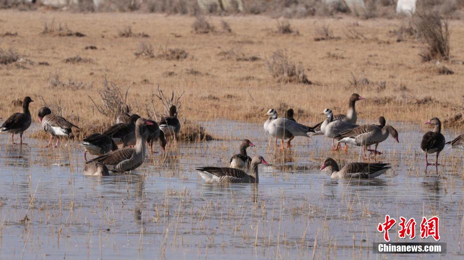柴達木盆地都蘭湖首次迎來大批綠頭鴨