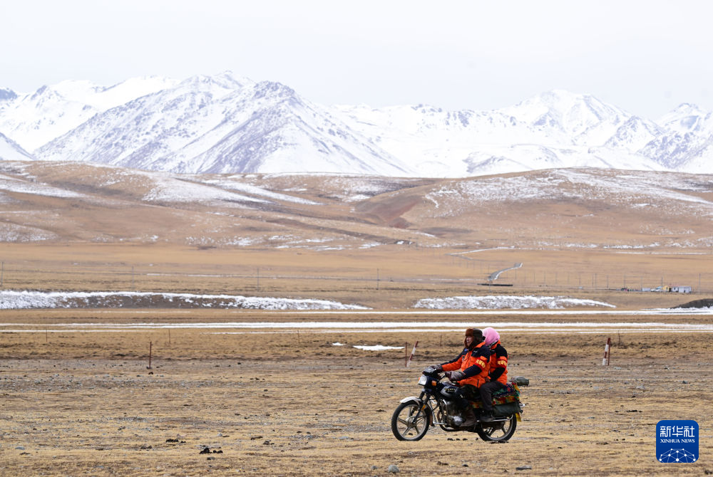 3月21日,葉金俄日與東木措騎著摩托車在青海省海北藏族自治州祁連縣的黑河流域巡護(hù)。新華社記者 張龍 攝