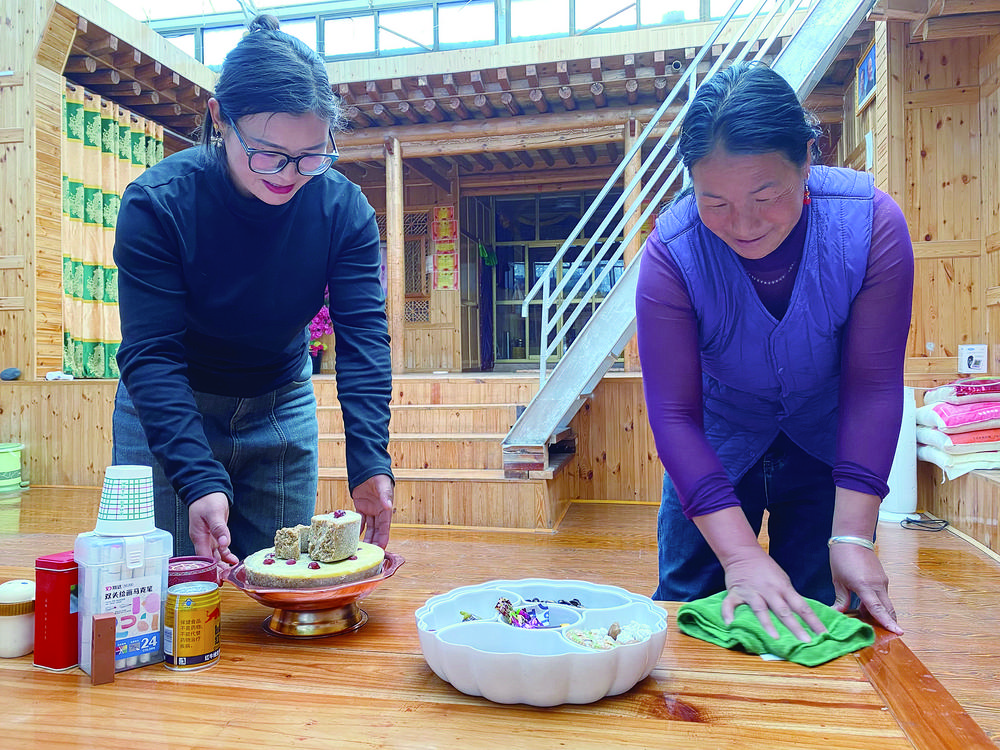 多杰卓瑪正和姑姑準(zhǔn)備品嘗藏式點(diǎn)心。欒雨嘉 攝