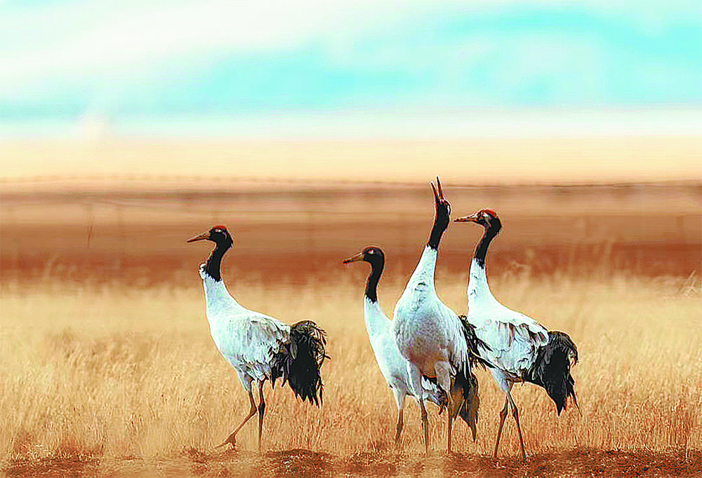 隆寶國家級自然保護(hù)區(qū)的黑頸鶴。資料圖片