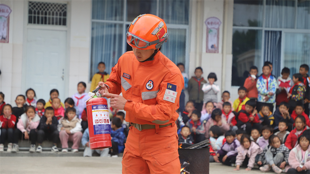 此次演練,迪慶州森林消防大隊(duì)維西駐防分隊(duì)結(jié)合校園設(shè)施實(shí)際和校園消防安全特點(diǎn),著重對(duì)發(fā)生地震、火災(zāi)時(shí)如何正確逃生等內(nèi)容進(jìn)行了詳細(xì)講解示范和演習(xí)演練。為讓師生們能夠更直觀地了解掌握滅火器及其操作與使用,活動(dòng)專(zhuān)門(mén)設(shè)置了模擬火情,由指戰(zhàn)員現(xiàn)場(chǎng)演示滅火器操作使用,并指導(dǎo)多名師生練習(xí)和操作使用滅火器。