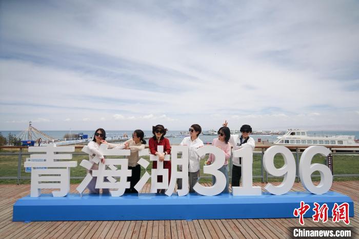 圖為游客在青海省海南藏族自治州共和縣青海湖二郎劍景區(qū)內打卡拍照。馬銘言 攝