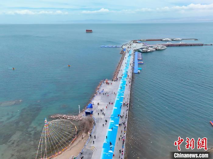 航拍游客在青海省海南藏族自治州共和縣青海湖二郎劍景區(qū)內觀光。馬銘言 攝