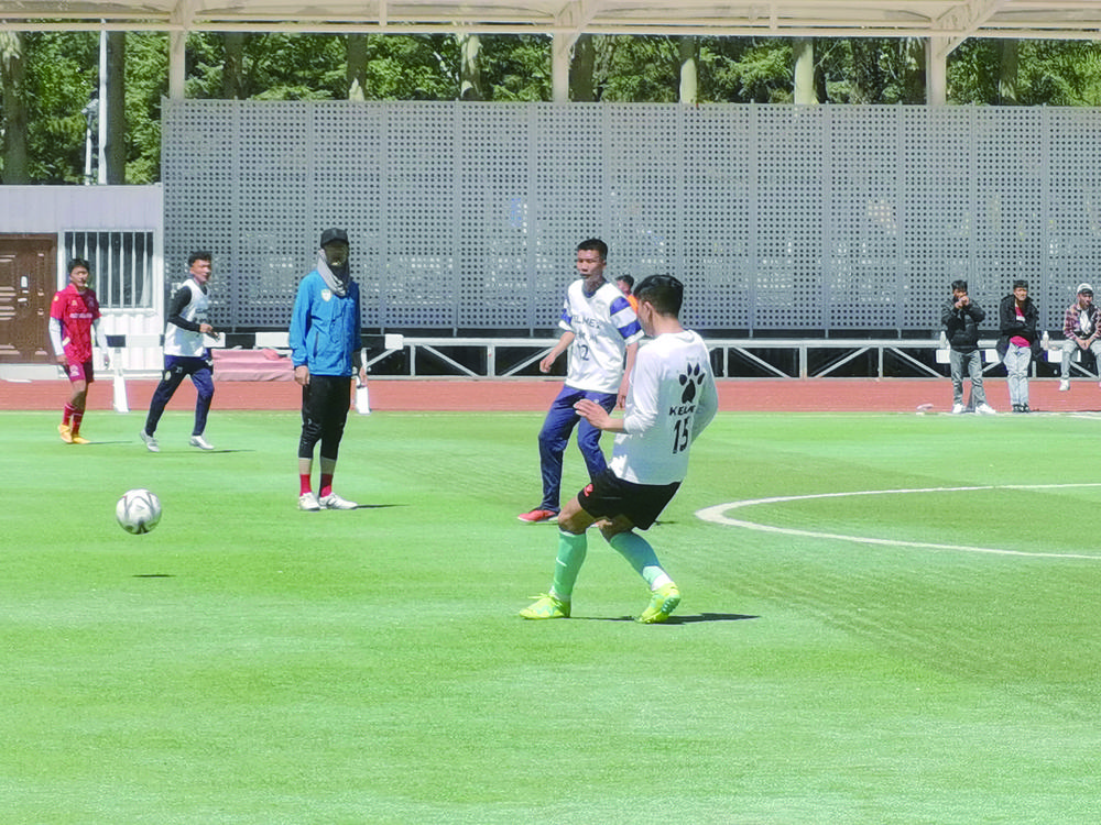 5月26日,青海省海南藏族自治州龍羊隊將迎來“青超”聯(lián)賽首戰(zhàn),在海東市體育中心對陣海東青海拉面隊。賽前的一周,隊員在海南州民族體育場抓緊訓(xùn)練。