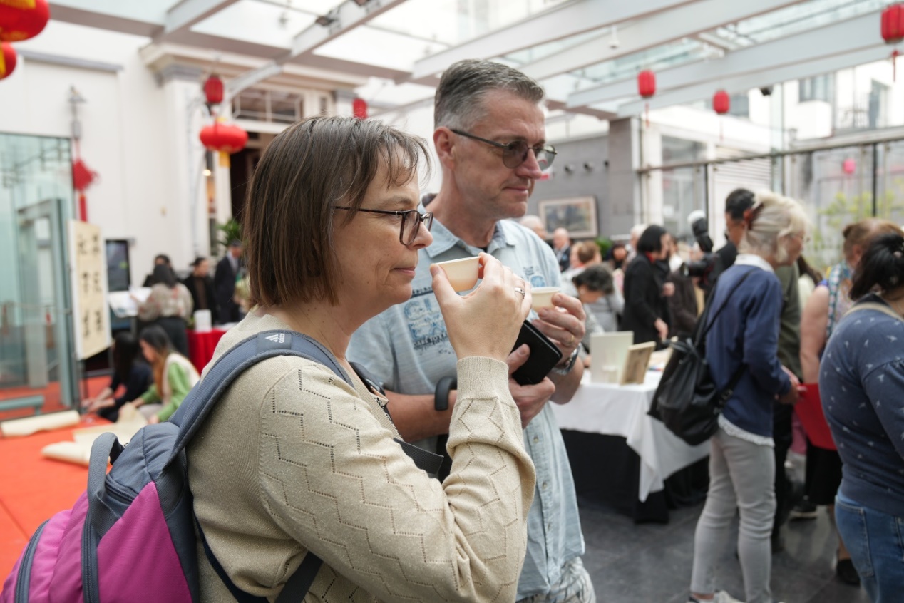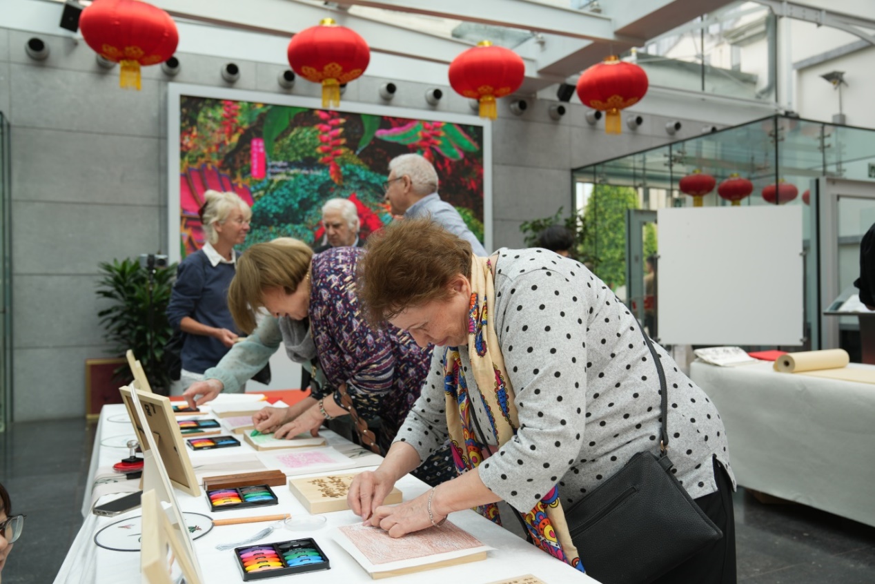 有著1800多年歷史的傳拓,堪稱“中國最古老的印刷術(shù)”,是一種重要的文物保護(hù)和古籍修復(fù)技術(shù)。發(fā)展至今,已從拓金石發(fā)展為萬物可拓;從拓文字、圖案發(fā)展為全形拓。為讓歐洲民眾近距離感受傳拓的獨(dú)特魅力,昆明市非物質(zhì)文化遺產(chǎn)傳承人張衡特別創(chuàng)作集立體拓、書法、篆刻等多種藝術(shù)形式為一體的“普洱茶拓”,并定制“云騰四海·茗動天下”“茶馬古道”等拓版供嘉賓體驗(yàn)。