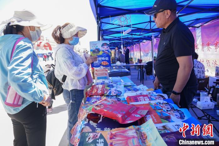 圖為民眾在賽場外購買海北州特優(yōu)農(nóng)畜產(chǎn)品。馬銘言 攝