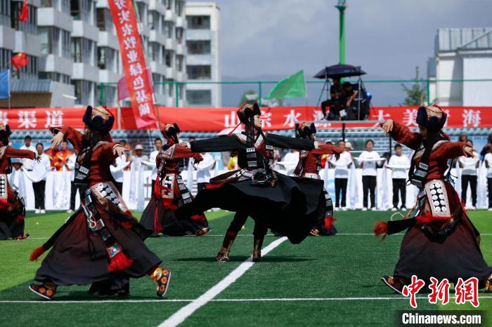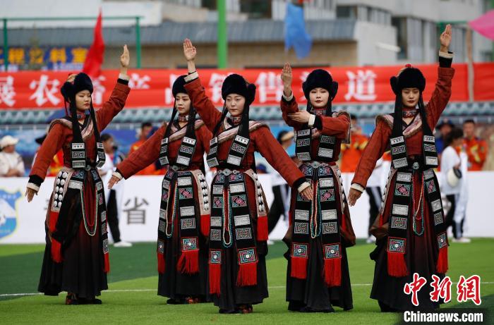 5月25日,“大美青海·高原足球”超級聯(lián)賽海北賽區(qū)首場比賽在青海省海北藏族自治州門源回族自治縣進(jìn)行,門源縣國家級非物質(zhì)文化遺產(chǎn)華熱藏族服飾亮相賽場,為選手加油助威。華熱意為英雄的部落,其中的服飾文化個(gè)性特征尤為鮮明。華熱藏袍外衫有寬、長、大的特點(diǎn),日穿夜蓋。內(nèi)衫選用白色或其他顏色的綢布或棉布,斜襟高領(lǐng)。