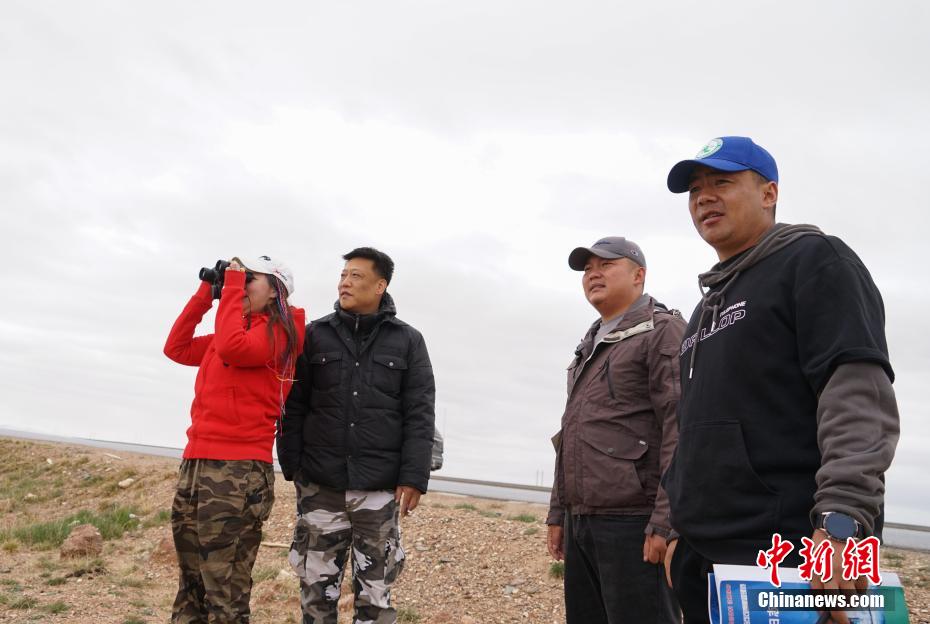 6月20日,在三江源國(guó)家公園長(zhǎng)江源園區(qū)可可西里管理處索南達(dá)杰保護(hù)站附近,2名生態(tài)管護(hù)員(右一、右二)與游客眺望藏羚羊,并進(jìn)行科普宣傳。中新社記者 馬銘言 攝