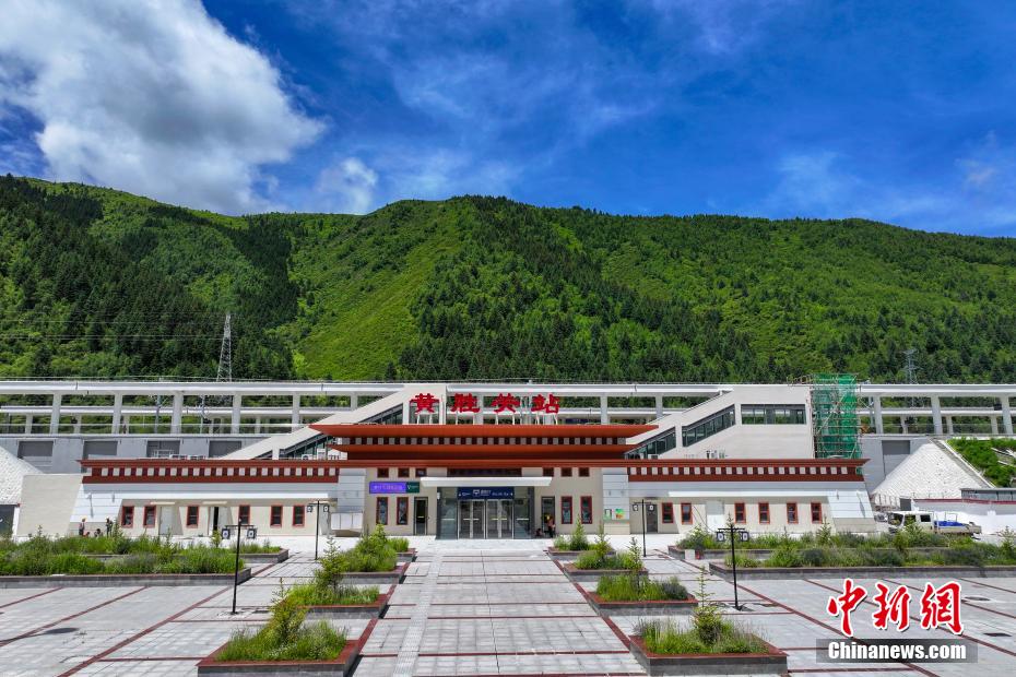 圖為7月7日拍攝的川青鐵路黃龍九寨站站房外景。(無人機照片)中新社記者 劉忠俊 攝