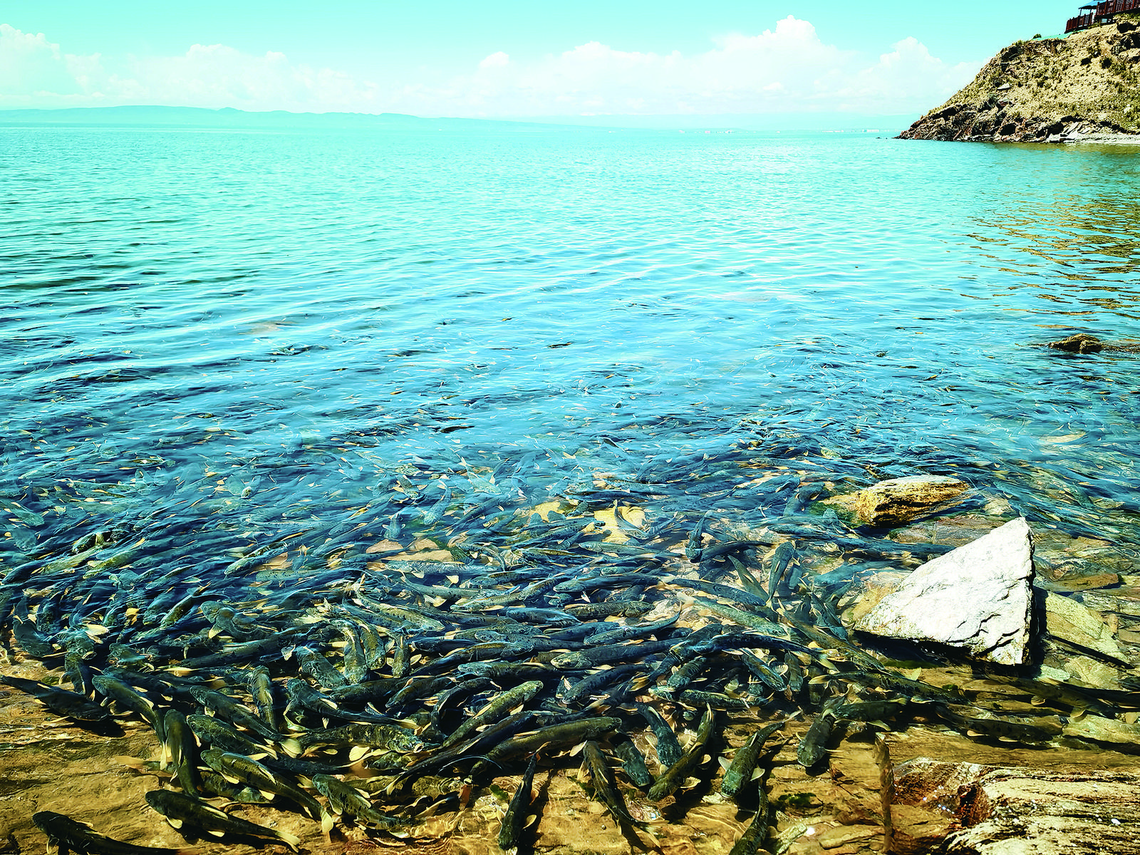 圣泉灣生態(tài)體驗區(qū)湖邊遨游的青海湖裸鯉。