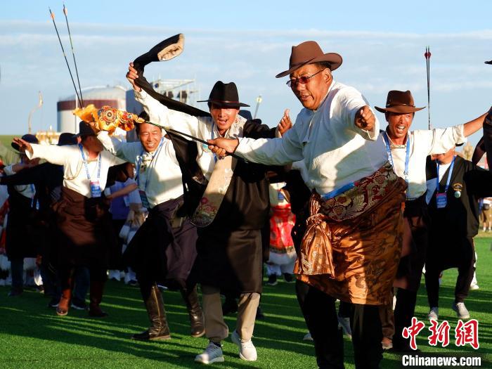 7月20日至23日,第九屆中國(guó)·青海國(guó)際民族傳統(tǒng)射箭精英賽在青海省海北藏族自治州剛察縣舉行,來自柬埔寨、蒙古國(guó)、波蘭、俄羅斯、中國(guó)等22個(gè)國(guó)家和地區(qū)的1100名射箭高手齊聚一堂,展示精湛射箭技藝。本屆賽事設(shè)置現(xiàn)代傳統(tǒng)弓、復(fù)合弓、反曲弓及牛角弓4個(gè)弓種,設(shè)置“現(xiàn)代傳統(tǒng)弓混合團(tuán)體和個(gè)人”等5個(gè)競(jìng)賽項(xiàng)目。該賽事已成為中國(guó)民族傳統(tǒng)射箭比賽中規(guī)格級(jí)別最高、民族選手最多、參賽國(guó)家和地區(qū)最廣、弓種和項(xiàng)目最全的國(guó)際性品牌賽事。圖為7月20日青海省海北州運(yùn)動(dòng)員在青海剛察舉辦的入場(chǎng)式上歡呼。中新社記者 李雋 攝