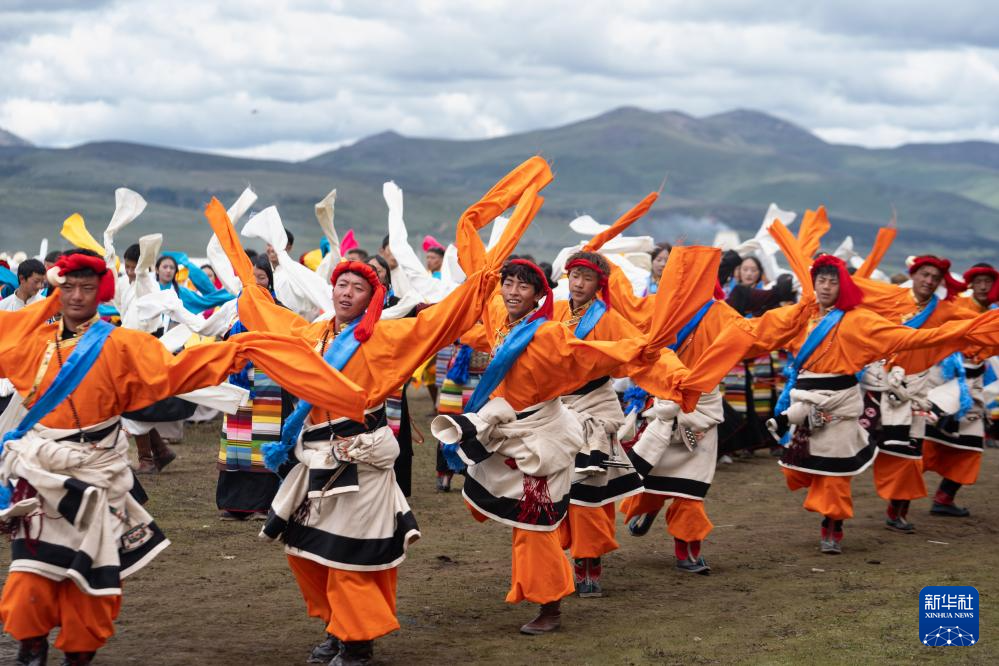 7月30日在理塘縣多旺塘賽馬場(chǎng)拍攝的鍋莊表演。新華社記者 江宏景 攝