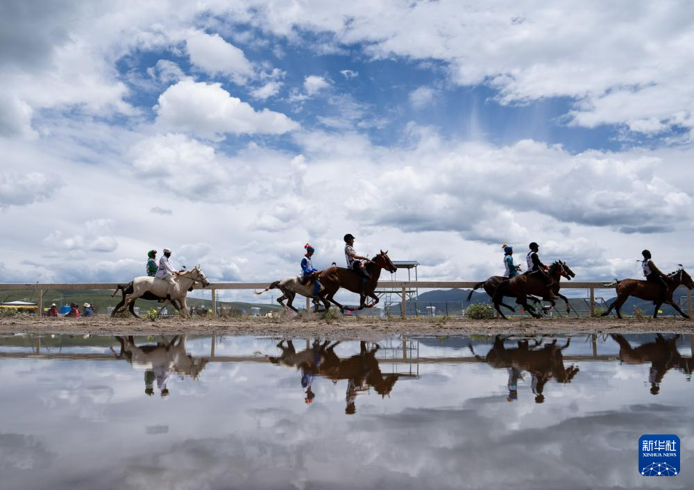 7月30日,在理塘縣“八一”賽馬場(chǎng),選手參加中馬10000米比賽。新華社記者 江宏景 攝