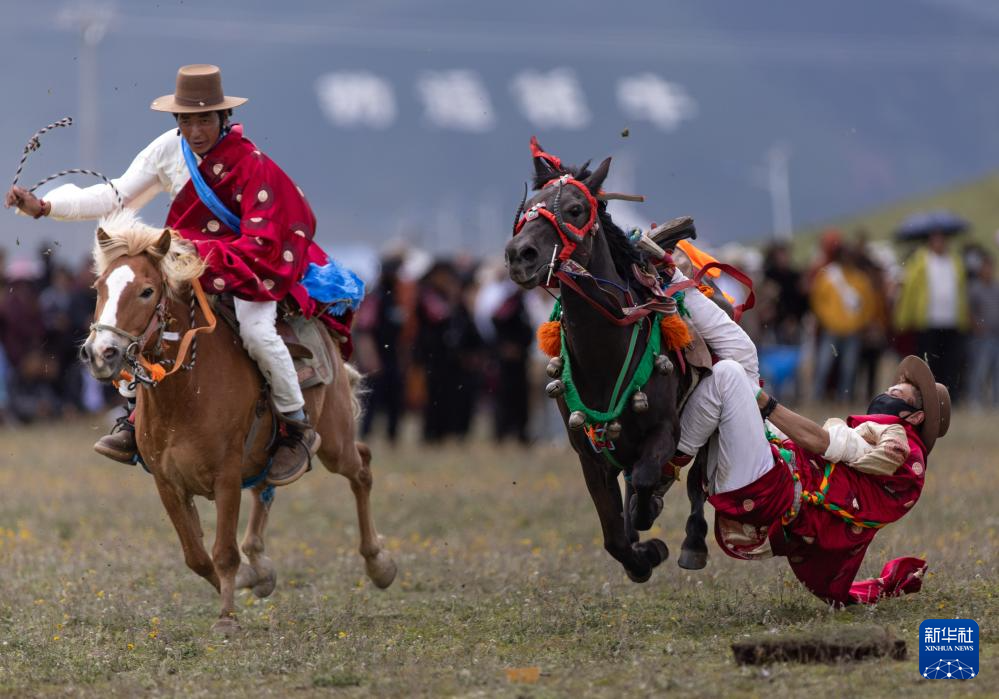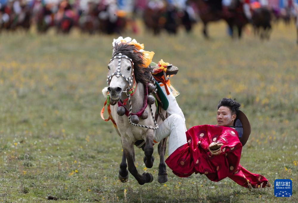 7月30日,四川省甘孜藏族自治州理塘“八一”賽馬會(huì)在多旺塘賽馬場(chǎng)啟幕,來(lái)自全縣各鄉(xiāng)鎮(zhèn)近千名牧民匯聚一堂。賽馬會(huì)上表演的拾哈達(dá)、馬上射擊、馬上射箭、鐙里藏身、五彩凌空等馬術(shù)絕技,讓當(dāng)?shù)啬撩窈陀慰拖硎芰艘粓?chǎng)視覺盛宴。