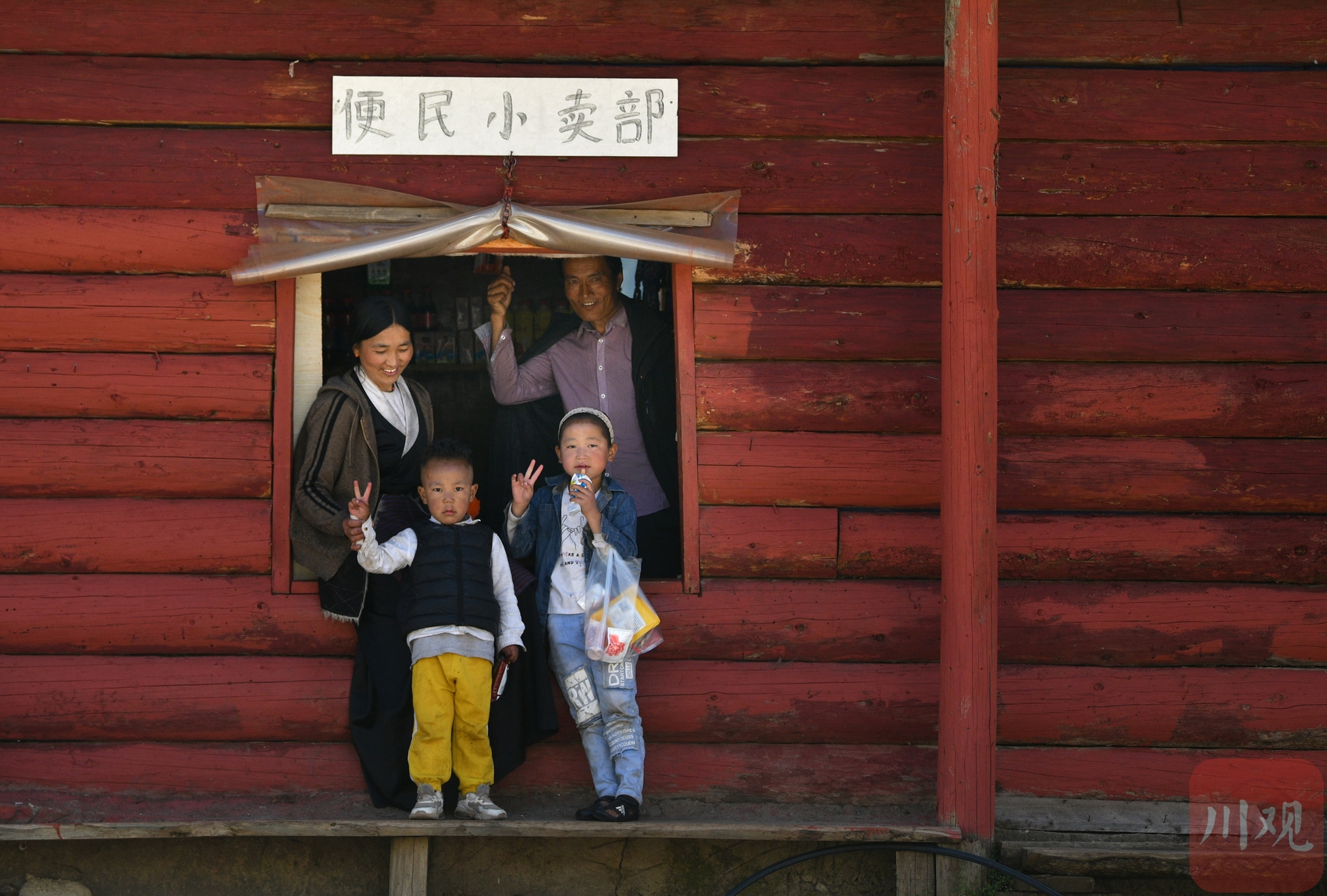拉姆(左)在村里沖仁真開(kāi)的小賣部為兩個(gè)娃買零食。