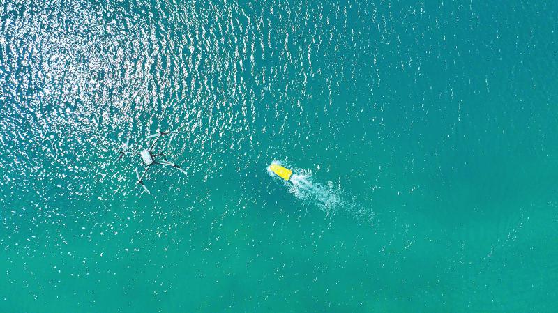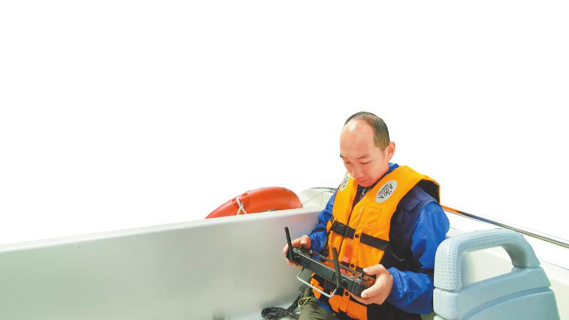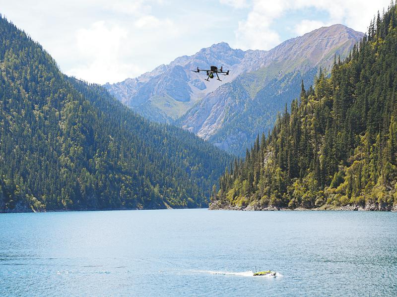無人船與無人機相互配合,對九寨溝內(nèi)這個最大、最深的高山湖泊進行水下、水上同步測量。韋維 攝