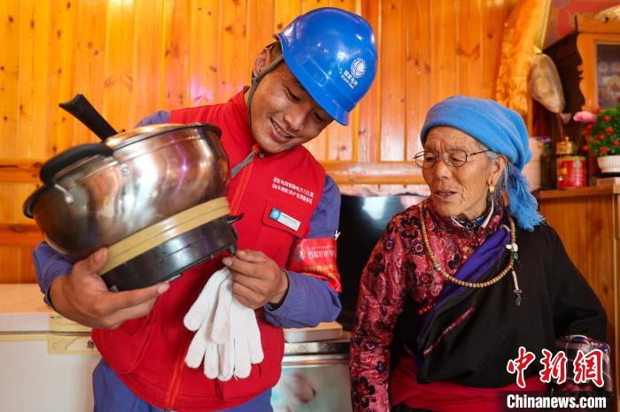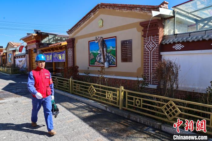 10月17日,在青海省海北藏族自治州剛察縣果洛藏貢麻村,久邁多杰前往牧民家中排查檢修。中新社記者 薛蒂 攝