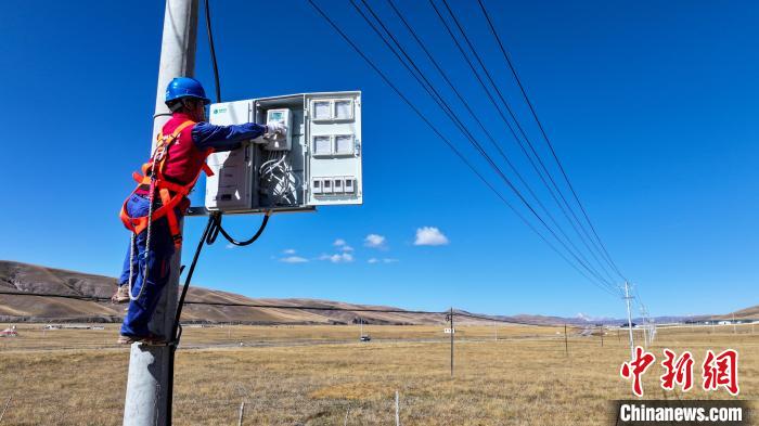 10月17日,在青海省海北藏族自治州剛察縣果洛藏貢麻村,久邁多杰檢查牧民戶表運行情況。中新社記者 薛蒂 攝