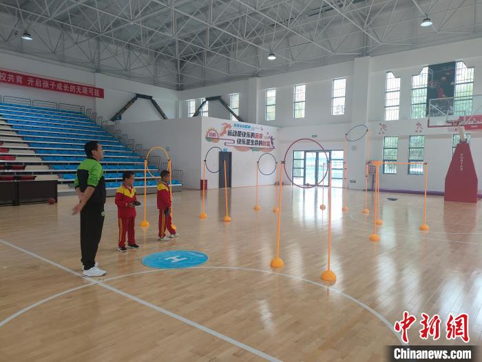 10月14日,德欽縣第二小學(xué)學(xué)生在室內(nèi)體育館內(nèi)參加無(wú)人機(jī)興趣班?!?德欽縣第二小學(xué)供圖)