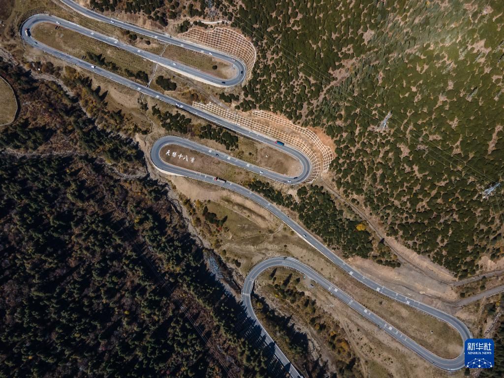 在四川省甘孜藏族自治州雅江縣拍攝的國(guó)道318公路“天路十八彎”(10月29日攝,無(wú)人機(jī)照片)。新華社記者 儲(chǔ)加音 攝