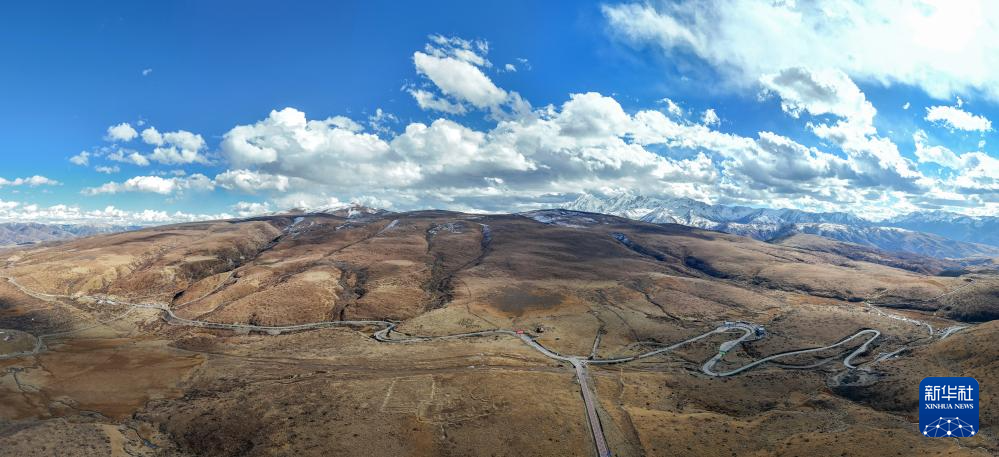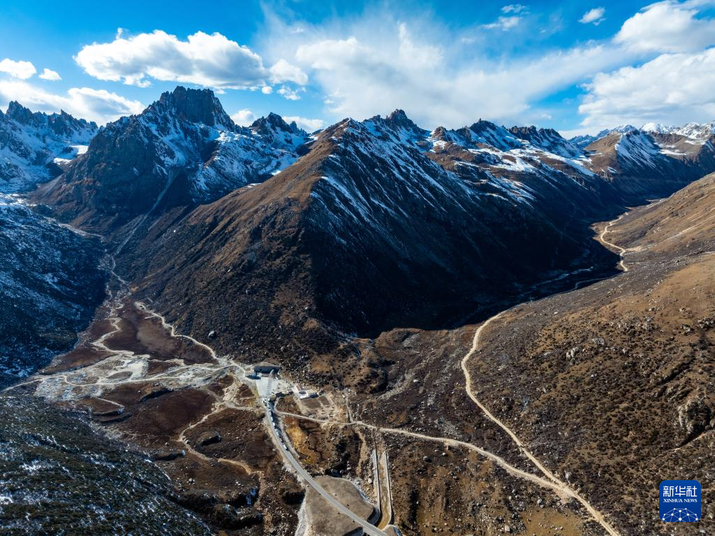在四川省甘孜藏族自治州德格縣拍攝的國(guó)道317公路雀兒山段老路(11月1日攝,無(wú)人機(jī)照片)。新華社記者 王曦 攝