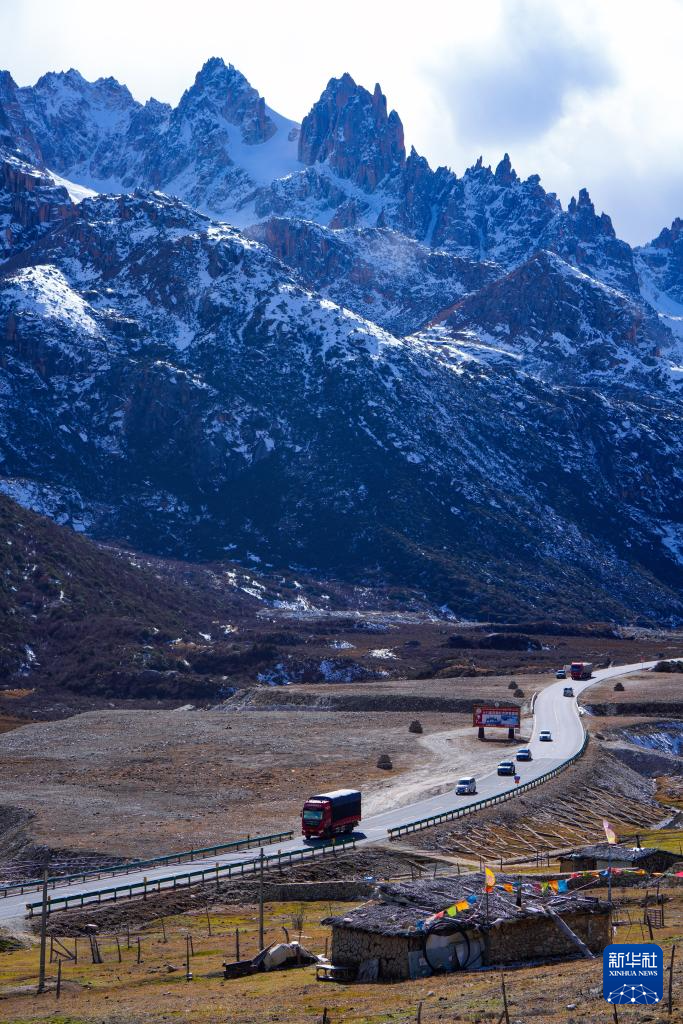 在四川省甘孜藏族自治州德格縣,車輛穿過(guò)雀兒山隧道后行駛在國(guó)道317公路上(11月1日攝)。新華社記者 沈伯韓 攝