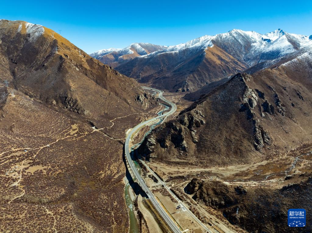 通往西藏自治區(qū)拉薩市的拉林高速(左)和國(guó)道318公路(11月9日攝,無(wú)人機(jī)照片)。新華社記者 沈伯韓 攝
