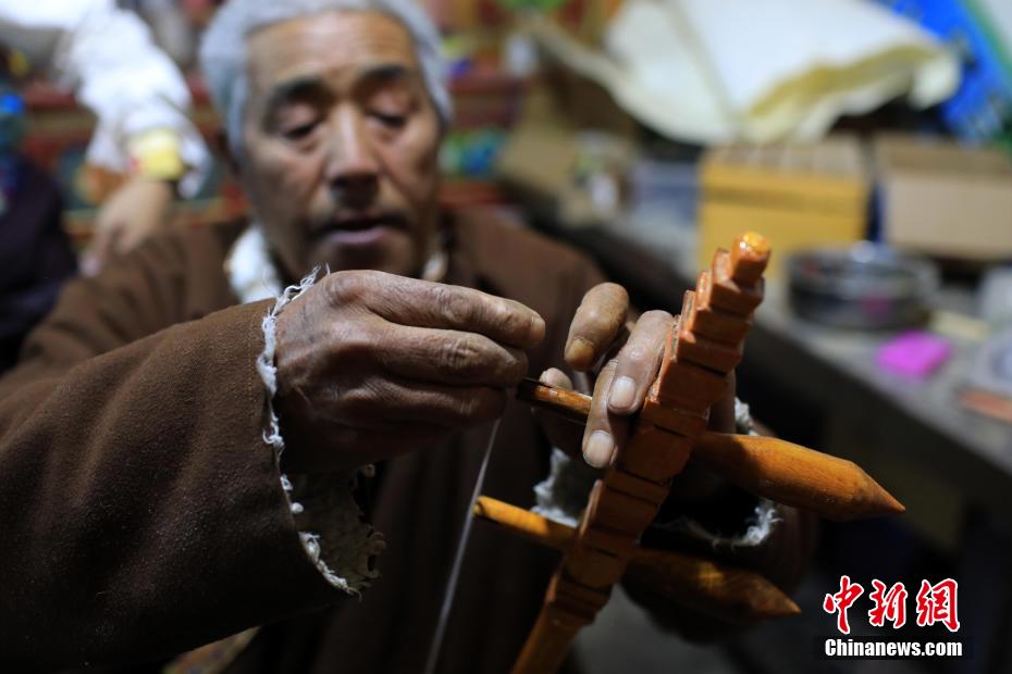 12月21日,四川巴塘,在弦胡制作坊里,王扎西制作弦胡。中新社記者 薛蒂 攝