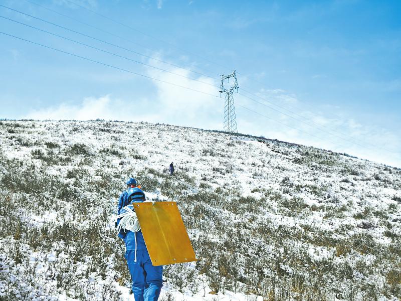 電力工人前往高海拔地帶巡查輸電線路。 國(guó)網(wǎng)阿壩供電公司供圖
