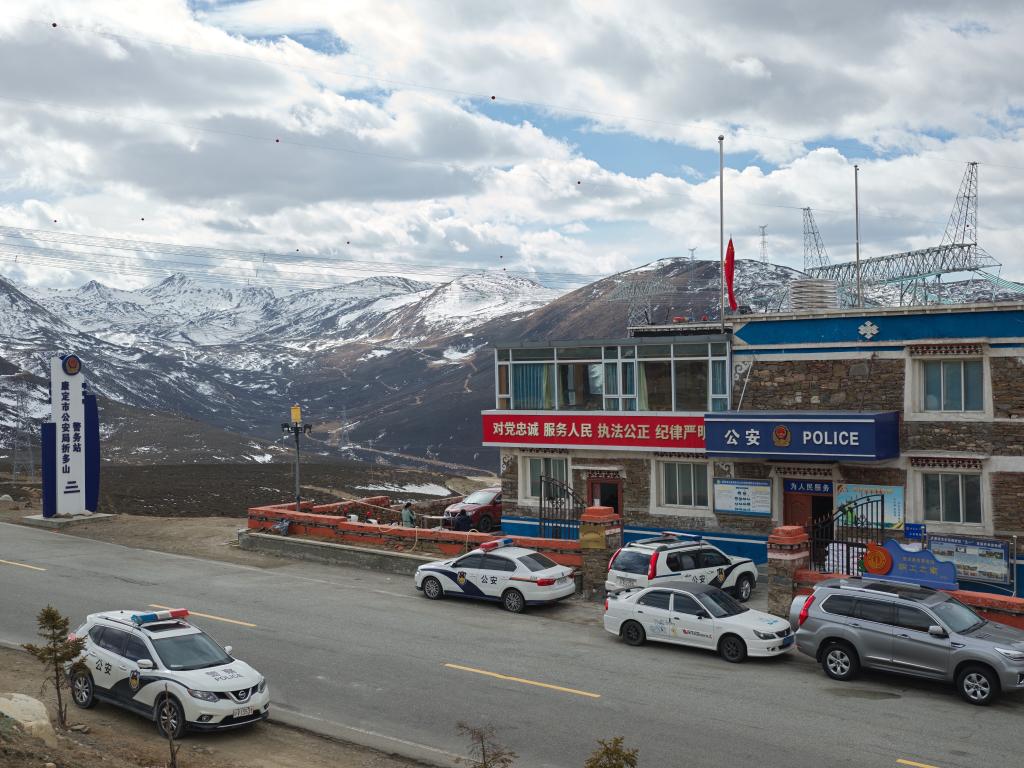 從海拔2500多米的康定城區(qū)出發(fā),沿盤山公路駛向山口。挺拔的松柏變?yōu)榈桶墓嗄荆詈笫强蔹S的草甸。海拔4298米,車子終于掙扎著爬完最后一個(gè)S彎,記者的手表提示“血氧飽和度79,嚴(yán)重高反”。一座孤零零的警務(wù)站出現(xiàn)在眼前:一幢低矮的石砌二層藏式建筑,屋檐下壘著十幾袋融雪劑,除冰鏟整齊倚墻,地上還有七八條粗細(xì)不一的鋼繩。