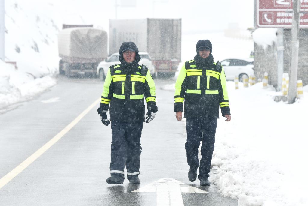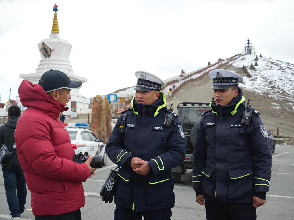 “‘二臺(tái)子’那個(gè)彎道背陰,冰還沒化,要把警車開到路上去提醒?!?885’彎急,要多注意?!巫印貎蓚€(gè)人,提醒車子一定不能占道停在路上!”四郎多吉在對(duì)講機(jī)里“排兵布陣”。