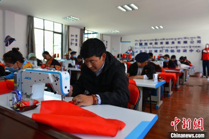 近日,中新網(wǎng)記者在現(xiàn)場看到,安置點民眾正踩著電動縫紉機縫制紅領(lǐng)巾?!澳撩駛冎熬陀凶灾埔路牧晳T,上手比較快,只需十多天培訓便可以上崗。”西藏翰林教育服務(wù)有限公司總經(jīng)理蘇龍說,公司培訓的第一批41位牧民已經(jīng)結(jié)業(yè)上崗,第二批正計劃招募中。