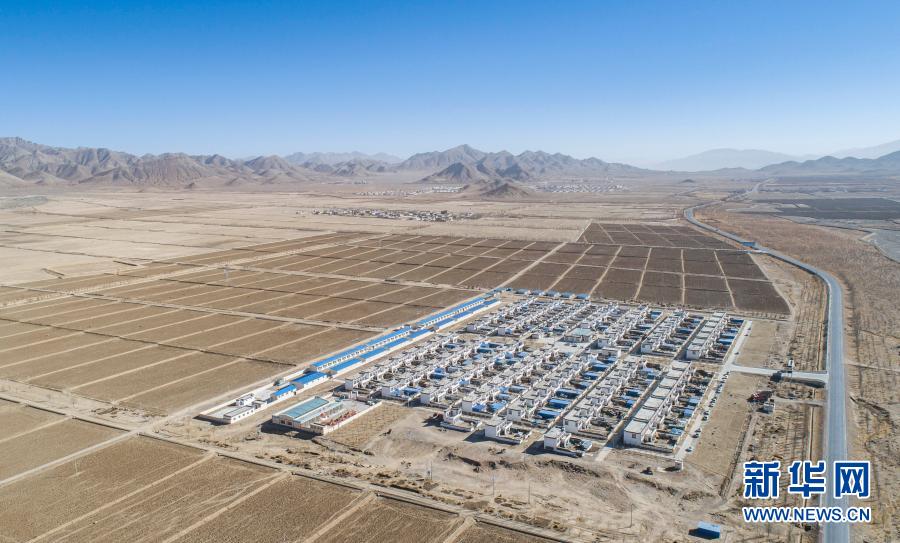 這是1月14日拍攝的西藏日喀則市薩迦縣扯休鄉(xiāng)嘎吉林村安置點(無人機(jī)照片)。新華社記者 孫非 攝