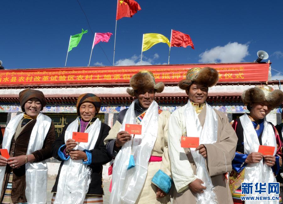 西藏拉薩市曲水縣才納鄉(xiāng)白堆村農(nóng)民展示貸款證(2015年4月17日攝)。新華社記者 覺(jué)果 攝