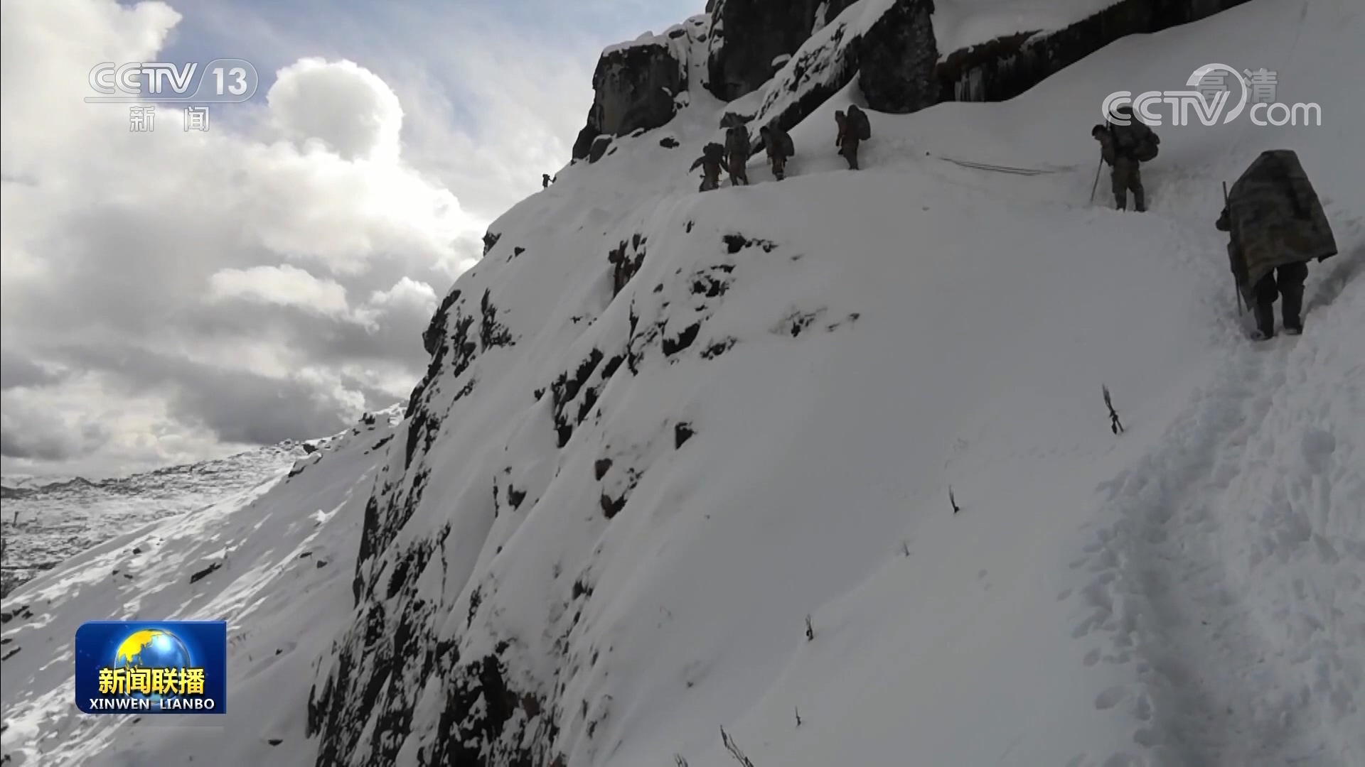 一邊是絕壁,一邊是懸崖,官兵們手腳并用,注意力高度集中緩慢通過(guò)。